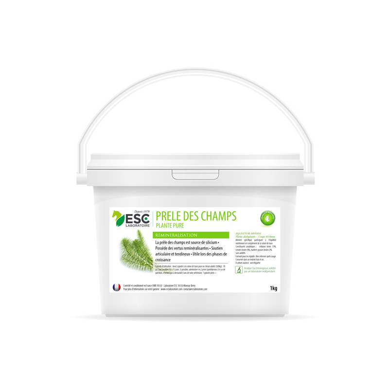 La prêle des champs est source de silicium et possède des vertus reminéralisantes utiles pour le cheval. La prêle des champs est recommandée en cas de soutien articulaire et tendineux. Cette plante est également utile lors des phases de croissance.