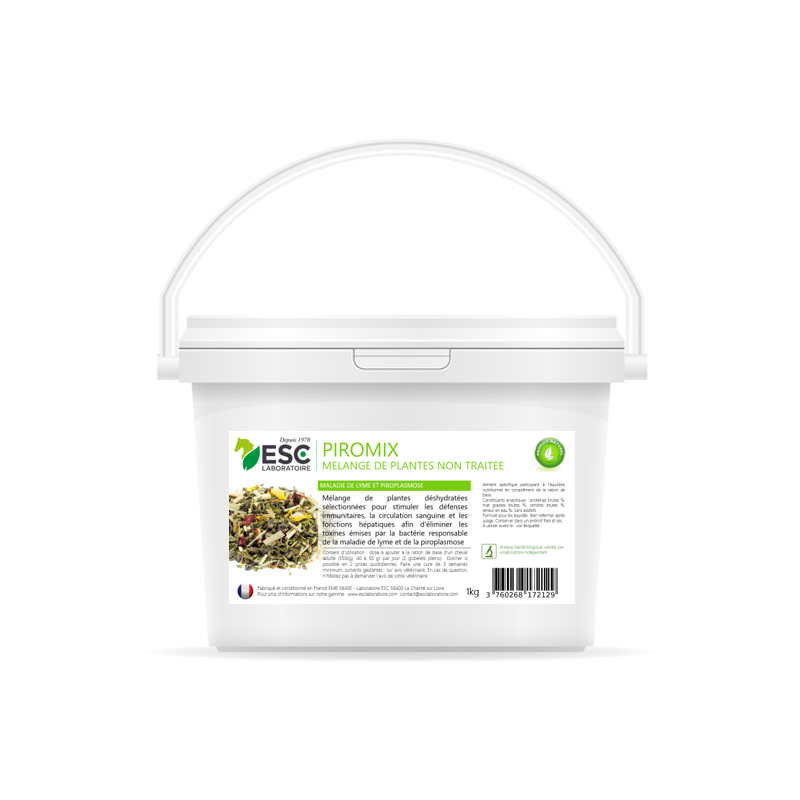 Piromix contribue à soutenir l’immunité du cheval, à lutter contre la fatigue, à drainer et détoxifier l’organisme lors de maladie de lyme ou de la piroplasmose.