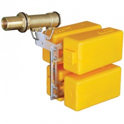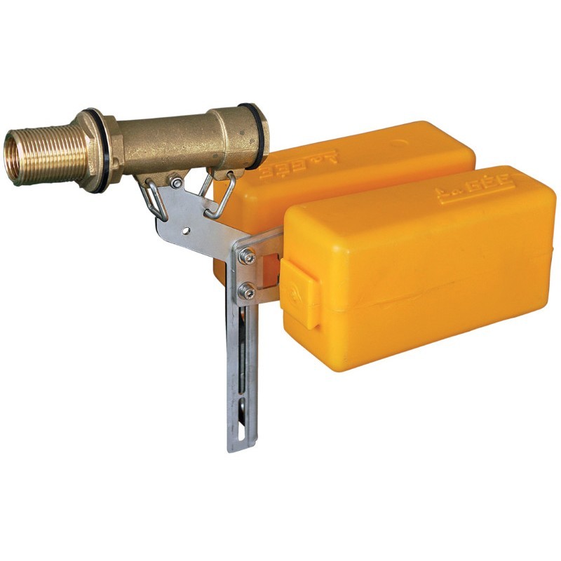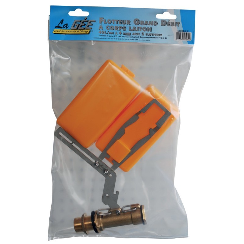 Corps en laiton. Il fonctionne sur des plages de pression allant de : - 4 bars pour 42 L/mn (avec un débit nominal de 75L/mn) avec ses 2 flotteurs d’origine - 5 bars pour 53L/mn (avec un débit nominal de 100L/mn) avec son option 2 flotteurs supplémentaires. Réglage en hauteur par glissement du support des 2 flotteurs sur une barre en inox de forte section. Il comporte un système de blocage de son mécanisme pour stopper l’arrivée d’eau.